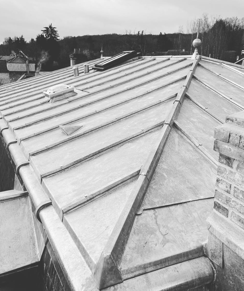• Toitures plates en zinc, en bac acier ou en Rhépanol® : terrasse à tasseaux et joints debouts.